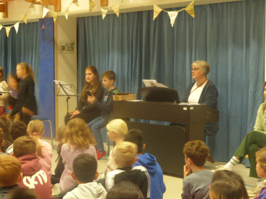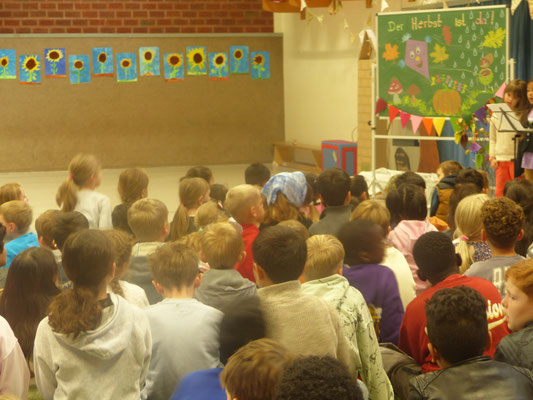 Jedes Jahr, am letzten Schultag vor den Herbstferien, begrüßen wir den Herbst. Mit fröhlichen Liedern, Gedichten und kurzen Auftritten stimmen sich alle Kinder